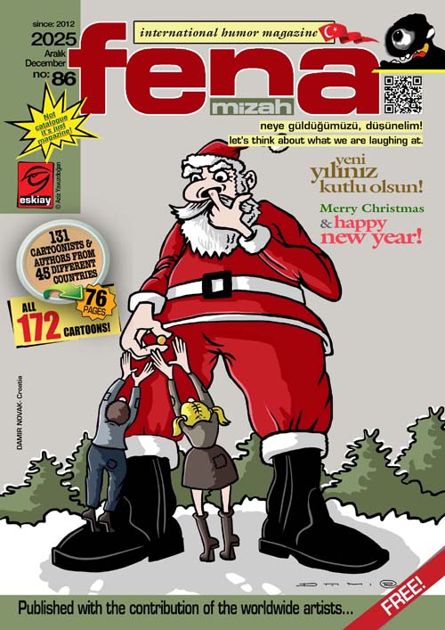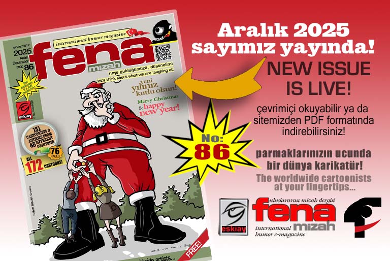 “fenamizah e-dergisi”nin bu 76. sayısında 39 farklı ülkeden 117 karikatürist ve yazar yer alıyor.
