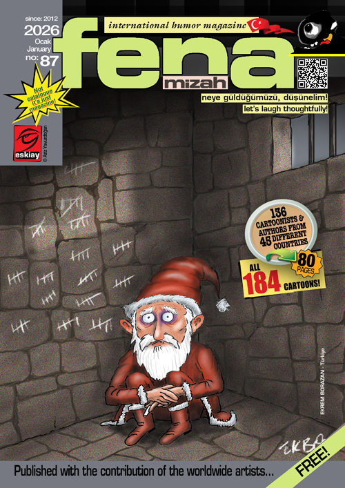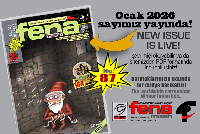 Yayın yönetmenliğini Aziz Yavuzdoğan‘ın yaptığı, dünyaca ünlü karikatürist ve yazarların gönüllü katılımlarıyla yayınlanan “fenamizah e-dergisi”nin bu 79. sayısında 39 farklı ülkeden 131 karikatürist ve yazar yer alıyor.